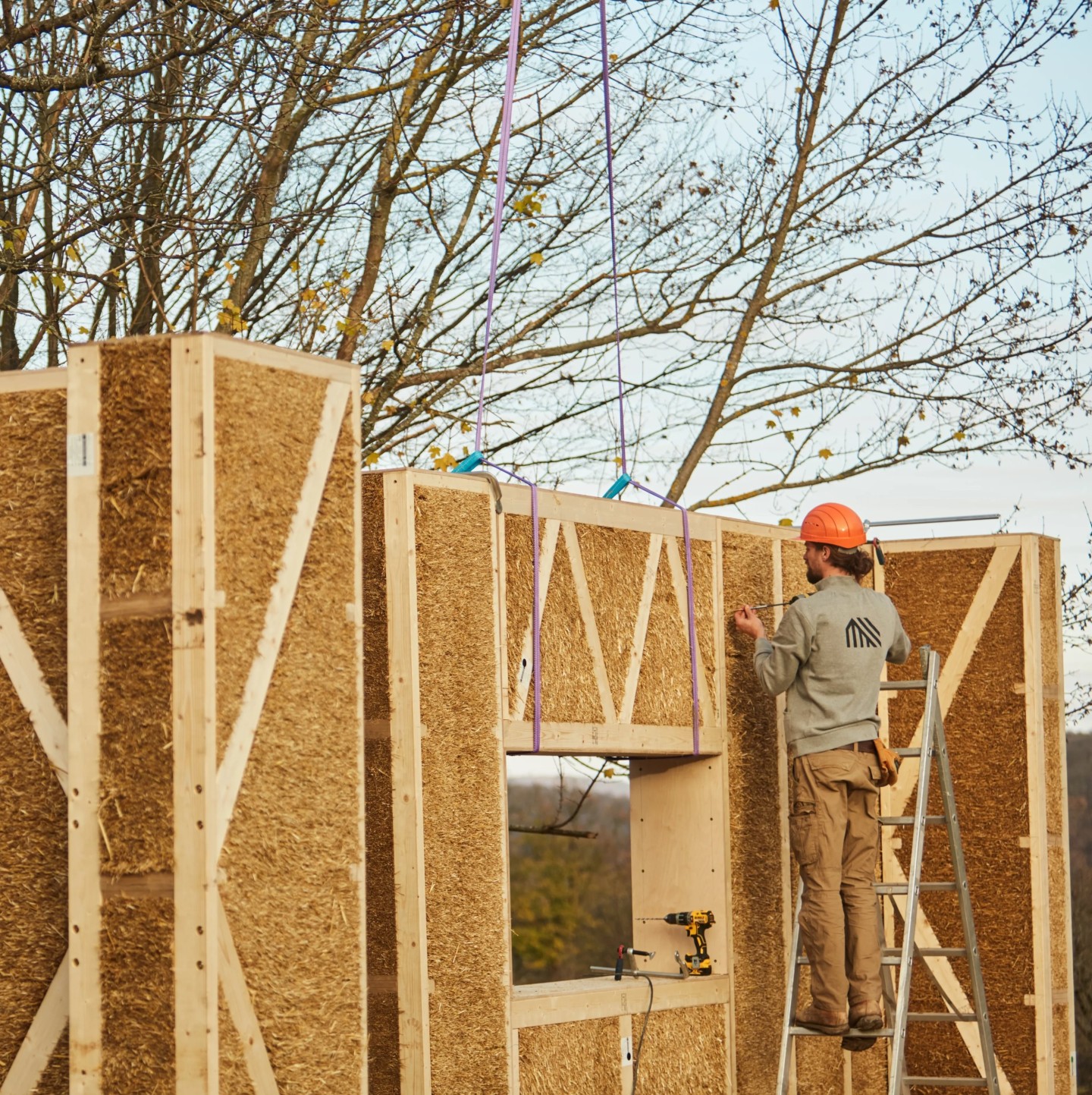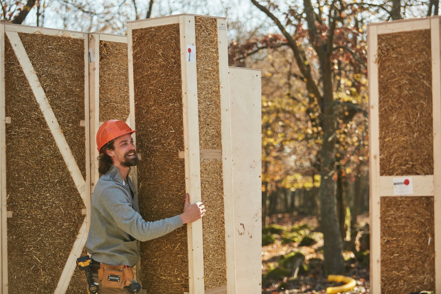 Composed of 98% natural, renewable materials with no additives, EcoCocon panels use wood and straw, a byproduct of wheat production.